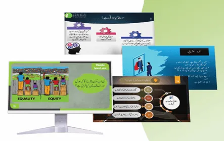 Workshops: To achieve the outcomes of Character Building Program (CBP), 125 workshops have been developed. Each grade level has 25 workshops, one for each quality. All workshops are designed according to children’s age, interests, and inclinations, using full audio-visual support to keep their attention focused. The workshops include activities that aid in character building and behavior change, providing practical examples from everyday life. The aim is to reduce the additional burden of books on children.