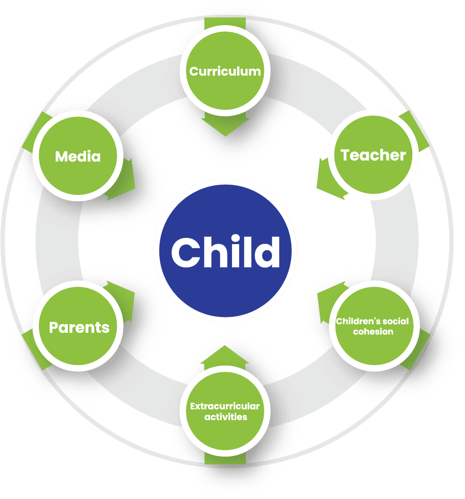 Children’s upbringing cannot be achieved through a single source. When all factors influencing children provide a consistent environment, the desired qualities and behaviors emerge. Therefore, it is not just educational institutions or parents alone; the curriculum, teachers, parents, peers, and media are the six key factors through which Character Education Foundation (CEF) aims to nurture children. By the Grace of Almighty Allah (SWT), after thorough research, practical and effective materials have been developed for all these sources.